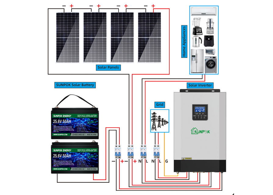 Sunpok Energy, sistemin hizmet ömrünü uzatmak için her bileşenin makul sıralamasına göre sistemin ne kadar PV gücü, invertör gücü ve pil kapasitesine ihtiyaç duyduğunu onaylayacaktır.