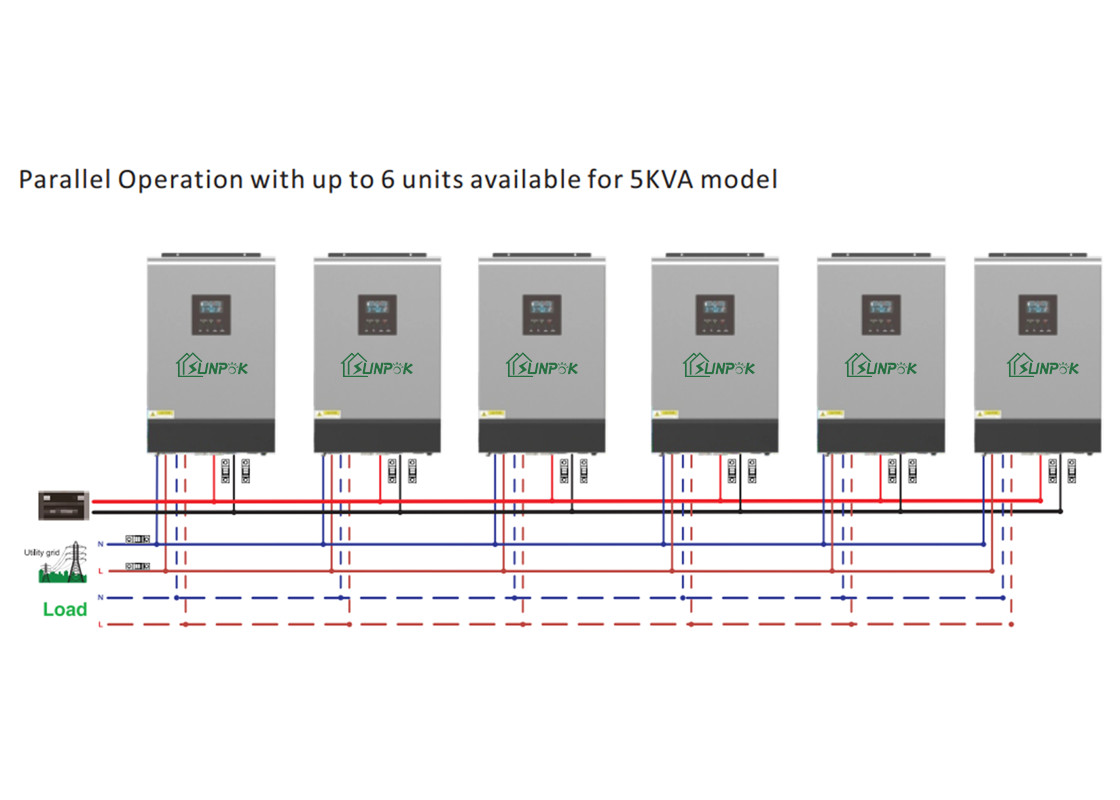 Sunpok 5Kw tek fazlı yüksek frekanslı şebekeden bağımsız invertör, güç olmayan alanlar, göçebe alanlar, iletişim baz istasyonları, gücün dengesiz olduğu alanlar, adalar, sınır karakolları, doğal yönetim ofisleri, gazete bayileri, pil üreticileri için pil paketleri vb. için uygundur. LED ekrana sahip, USB/RS232/RS485/Bluetooth/Kuru kontak, kompakt tasarım ve yüksek maliyetli performansı destekler.
